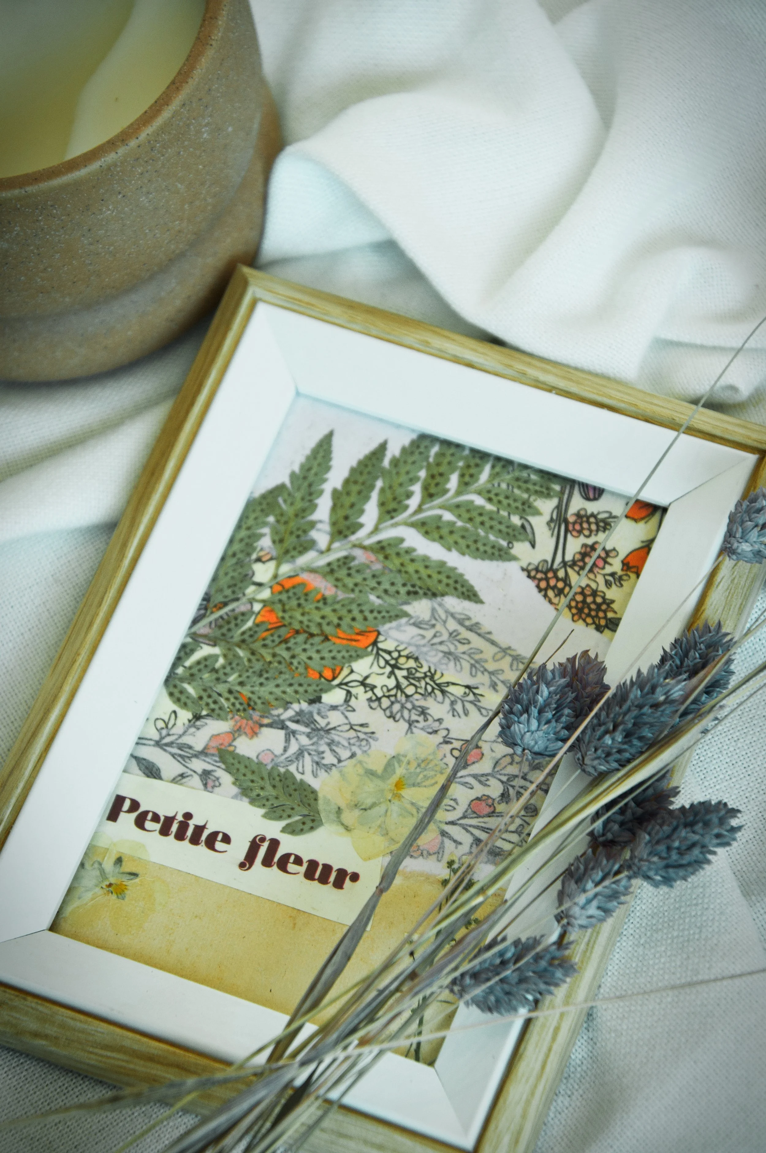 Des créations délicates, poétiques et intemporelles, réalisées à partir de fleurs séchées, de papiers choisis avec soin et de textures naturelles.